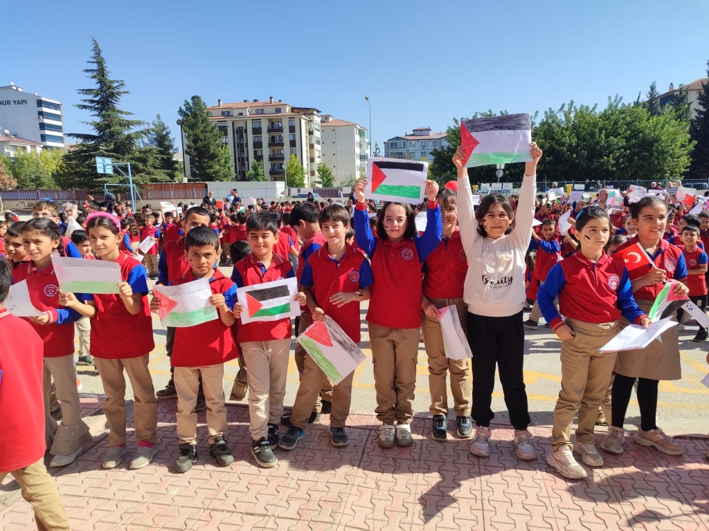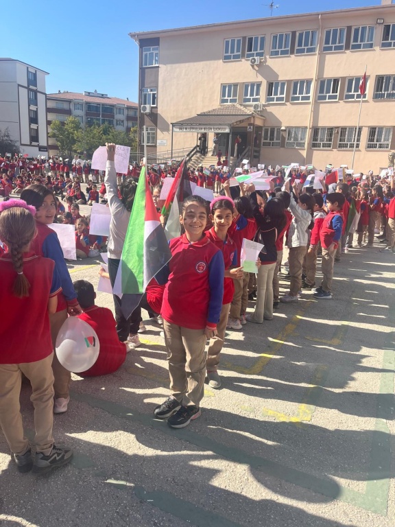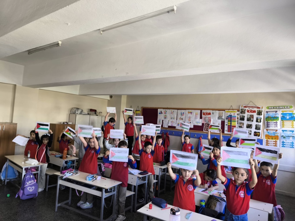 Türkiye Yüzyili Maarif Modeli’nin merkezinde de yer alan “erdem-deger-eylem” anlayışı ile barışa, insan haklarına ve evrensel değerlere saygılı bir nesil için Filistin ve Gazze temalı farkındalık etkinlikleri düzenledik.Farkındalık kapsamında Gazze de soykırım yapan katil İsrail’i hep birlikte kınıyoruz.Yaşasın özgür Filistin!